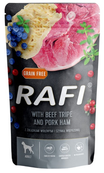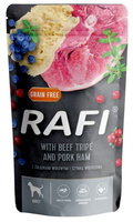 RAFI PIES sasz.500g ŻOŁĄDKI WOŁOWE, SZYNKA WIEPRZ. BORÓWKI, ŻURAWINA /10