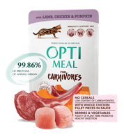 OPTIMEAL KOT sasz.85g CARNIVORES JAGNIĘ, KURA, DYNIA w galaretce